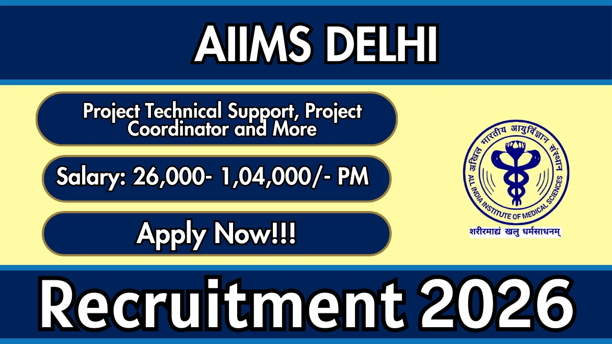 All India Institute of Medical Sciences Delhi Recruitment 2026 notification released for 3 Project Technical Support, Project Coordinator and More posts. Apply online from 16 March to 24 March 2026 at the official website aiims.edu.