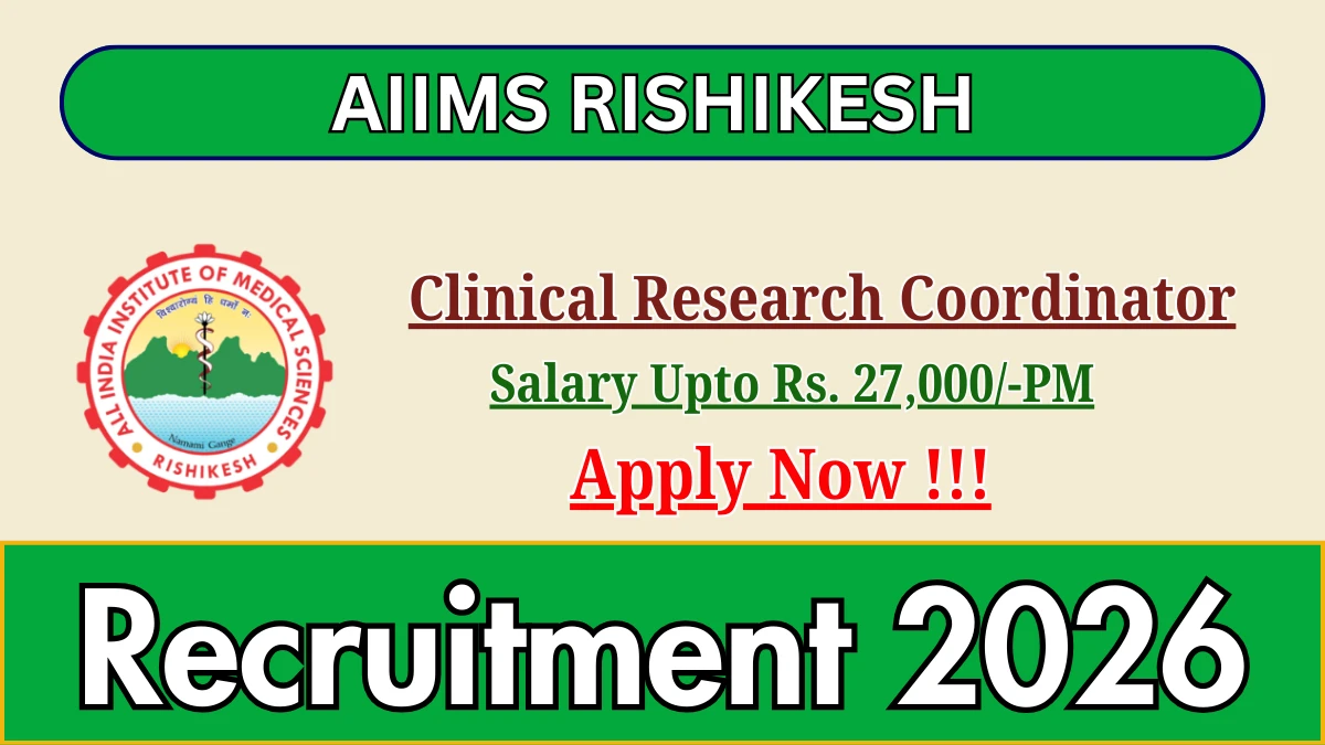 All India Institute of Medical Sciences, Rishikesh (AIIMS Rishikesh) Recruitment 2026 for 1 post of Clinical Research Coordinator. Candidates with Graduate, M.Sc Can Apply Online. The last date to apply online is 25-03-2026. The candidate shall apply online through AIIMS Rishikesh official website aiimsrishikesh.edu.in.