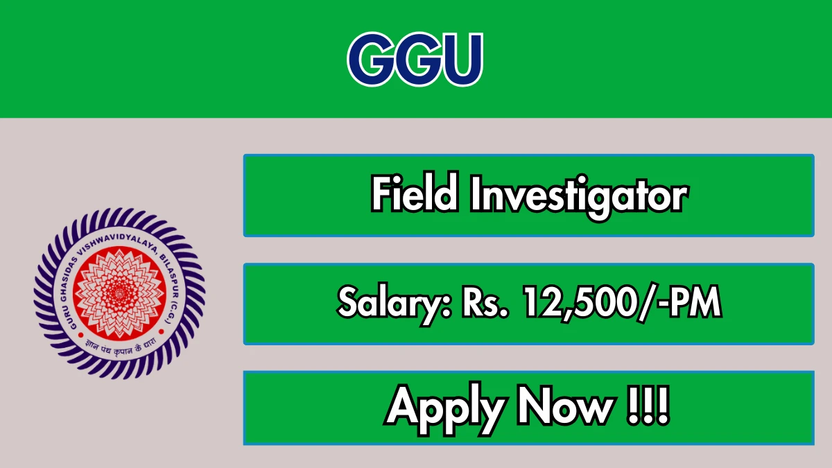 Guru Ghasidas Vishwavidyalaya Field Investigator Recruitment 2026 walk-in interview scheduled on 25 March 2026 for 2 temporary posts with salary ₹12,500 per month for PG Social Sciences candidates. Official Website ggu.ac.in