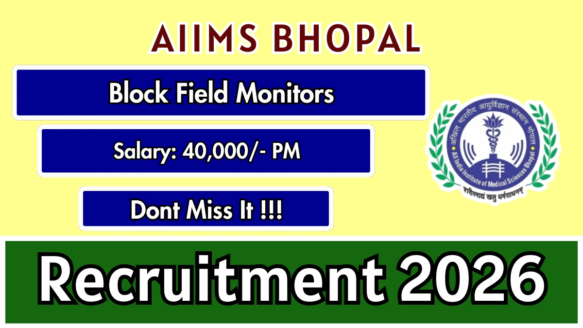 All India Institute of Medical Sciences Bhopal (AIIMS Bhopal) Recruitment 2026 for 2 posts of Block Field Monitors. Candidates with Graduate can attend Walk in. The Walk-in on 18-03-2026. For detailed information please visit AIIMS Bhopal official website.