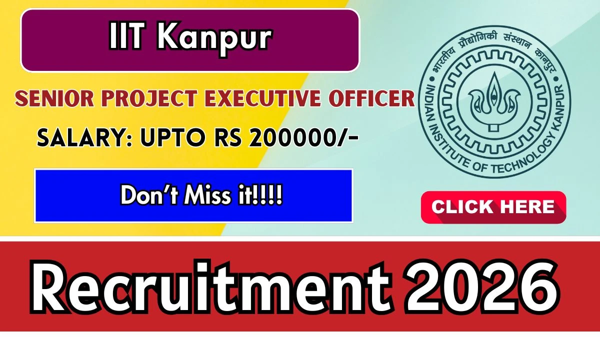 Indian Institute of Technology Kanpur (IIT Kanpur) Recruitment 2026 for post of Senior Project Executive Officer. Candidates with PhD Can Apply Online. The last date to apply online is 09-03-2026. The candidate shall apply online through IIT Kanpur official website.