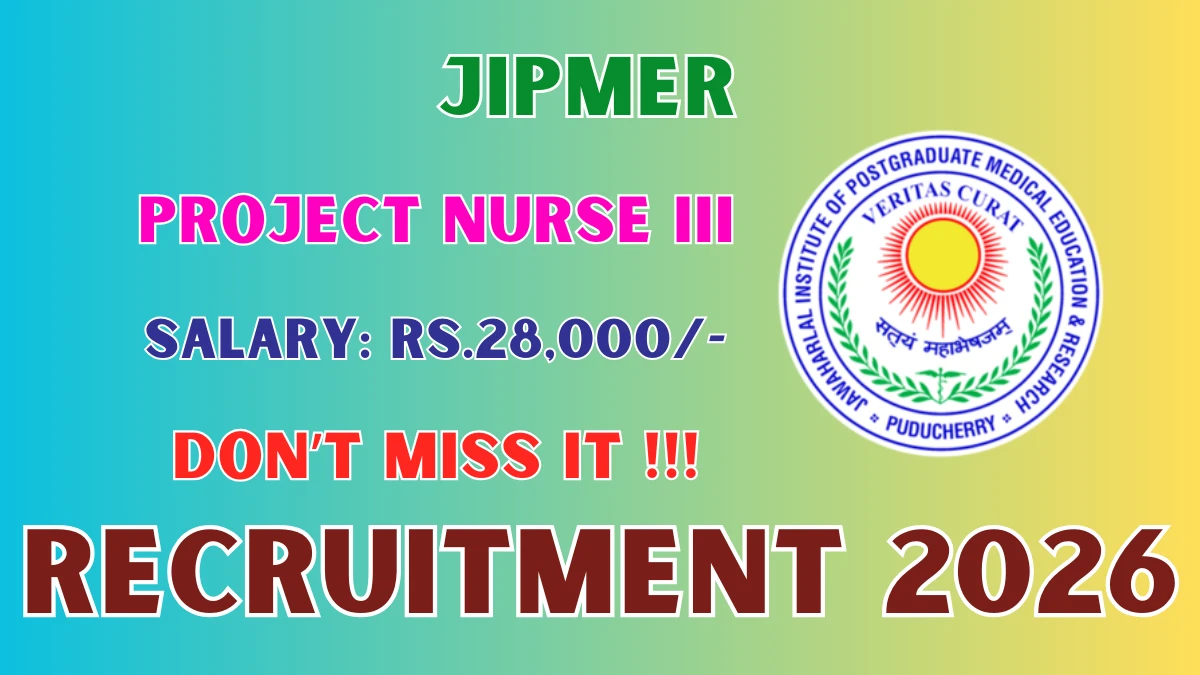 Jawaharlal Institute of Postgraduate Medical Education and Research (JIPMER) Recruitment 2026 for 1 post of Project Nurse – III (Staff Nurse). Candidates with B.Sc Can Apply Online. The last date to apply online is 11-03-2026. The candidate shall apply online through JIPMER official website.