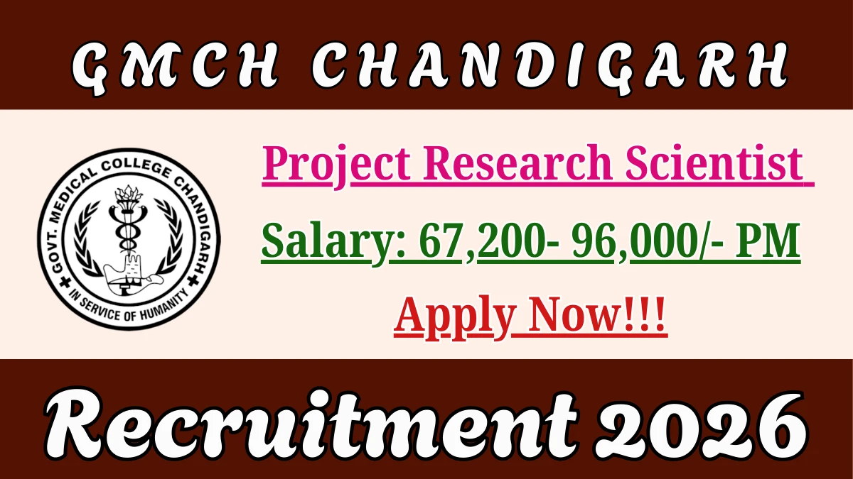 The Government Medical College Hospital Chandigarh (GMCH Chandigarh) has released 03 Project Research Scientist vacancies. Eligible candidates with MBBS, M.Sc, MD, MS, MPH, BDS can apply Offline Application Closes on February 27, 2026 at gmch.gov.in.