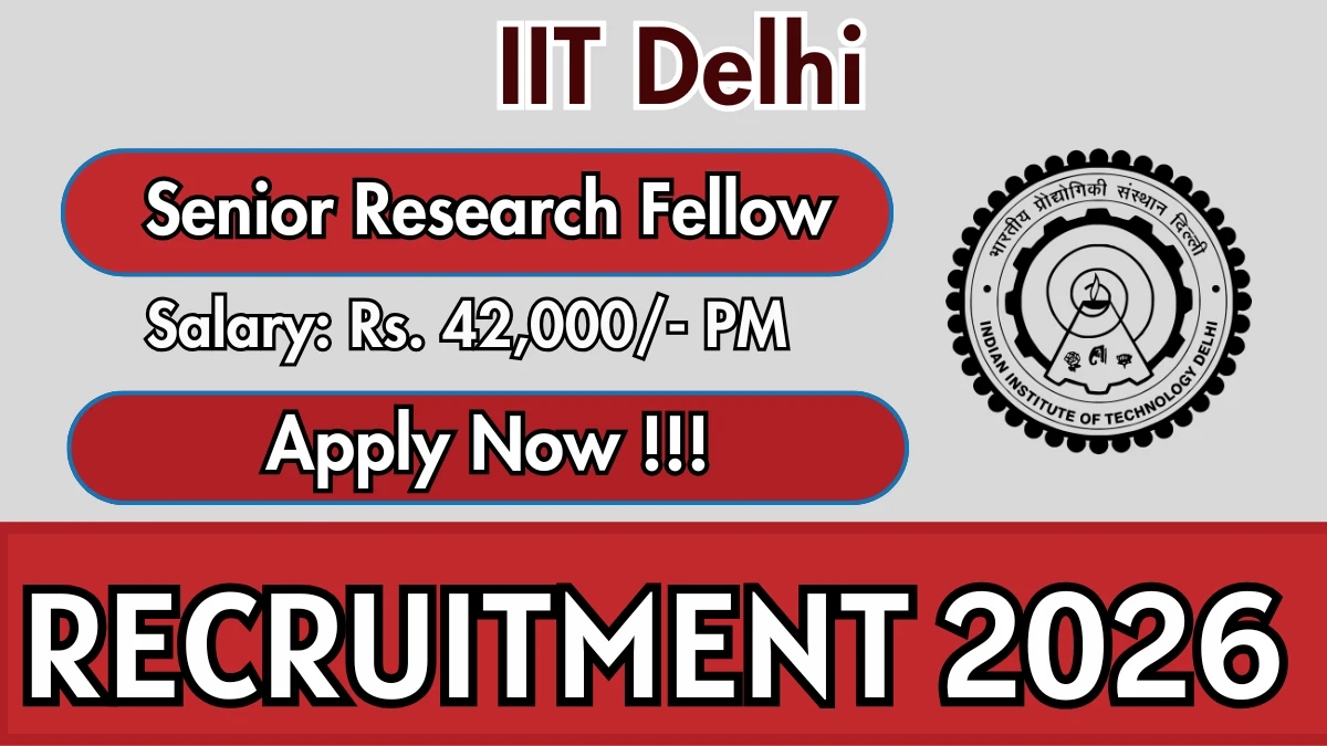 Indian Institute of Technology Delhi (IIT Delhi) Recruitment 2026 for 01 posts of Senior Research Fellow. Candidates with B.Tech/B.E, M.Tech/M.E Can attend the walkin. The Walk-in on 23-02-2026. For detailed information please visit IIT Delhi official website, iitd.ac.in.