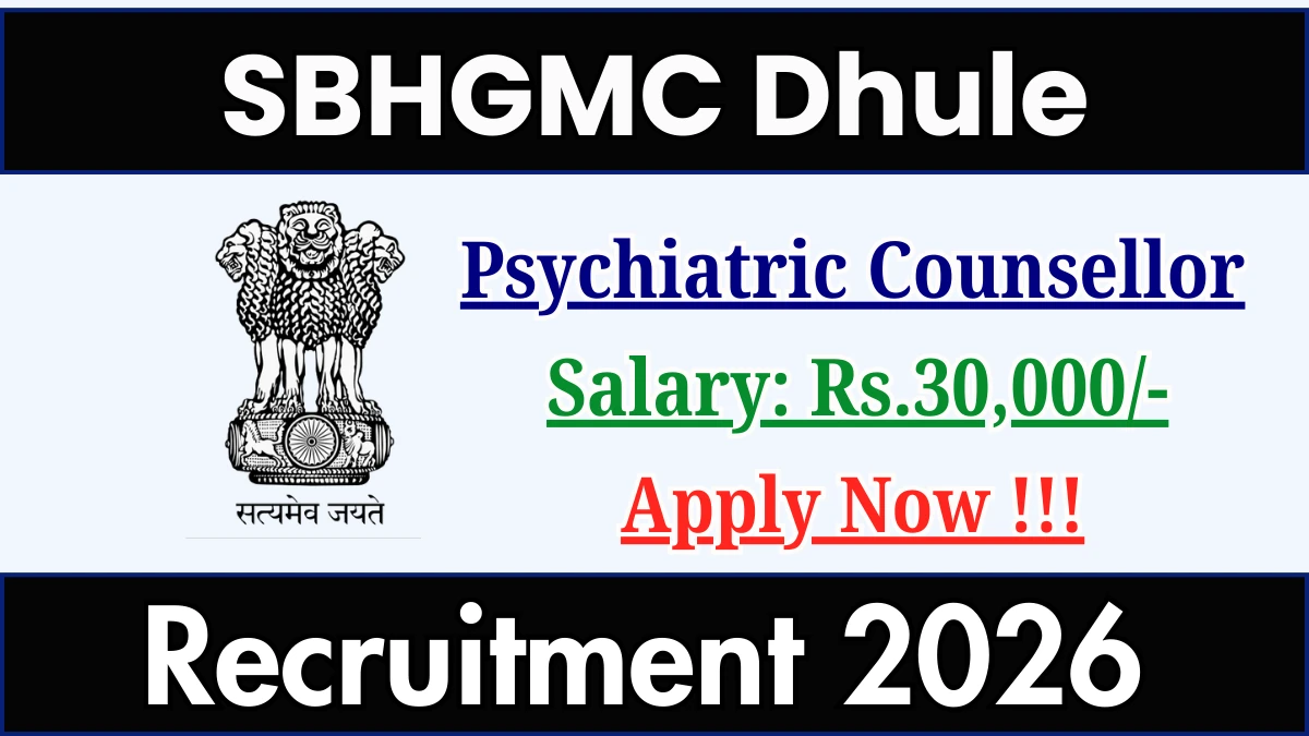 The Shri Bhausaheb Hire Government Medical College Dhule (SBHGMC Dhule) Recruitment 2026 for posts of 02 Psychiatric Counsellor. Candidates with Diploma, M.A, MSW Can Apply Offline. The Offline application opens on 03-02-2026, and closes on 09-03-2026. The candidate shall apply Offline through SBHGMC Dhule website, https://dhule.gov.in.
